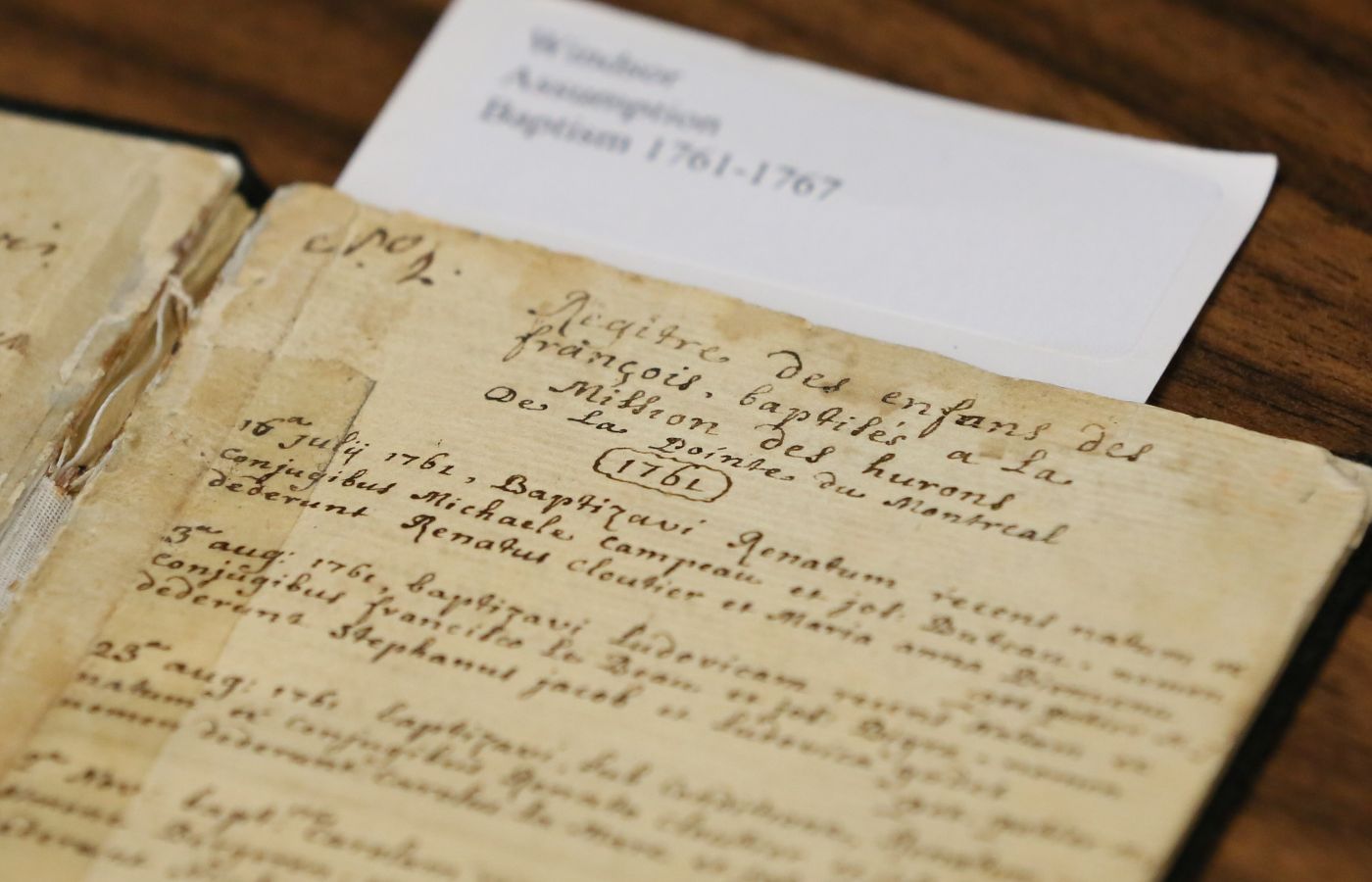 In 1765 the sixty-some (French) families living on the south shore petitioned for a parish of their own. Instead of erecting a second religious centre in the same locality, it was decided that the Mission of the Assumption among the Hurons should become the Parish of Our Lady of the Assumption with the care of the souls of both the Hurons and the French settlers. A new church, 60 x 30 ft., was built by the settlers to replace the 1749 chapel, which was falling into ruins. This integrating development was canonically effected in 1767 when Fr. Potier, the Jesuit missionary of the Hurons, became the first pastor. Beginning October 3, 1767, he opened a new Register of Baptisms and Marriages in which he signed himself as a “Jesuit missionary performing the pastoral duties in the Church of the Assumption at La Pointe de Montréal du Détroit.” That makes Assumption the oldest continuous parish in the present province of Ontario.